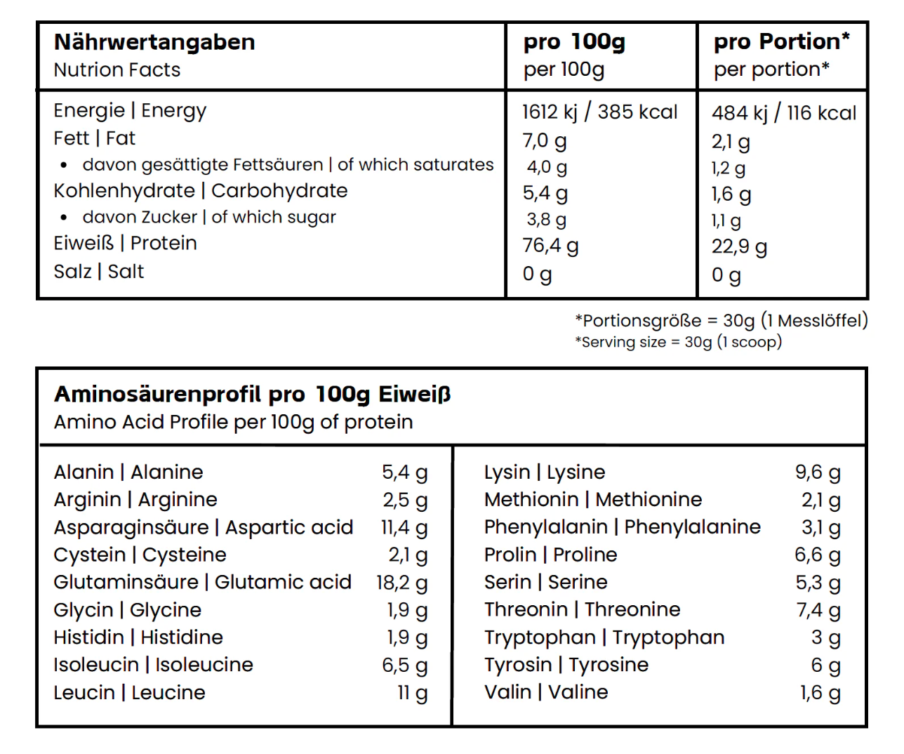 Ein gestrichener Messlöffel (12 g mit 300 ml Wasser ca. 30 Minuten vor dem Training vermischen und einnehmen.