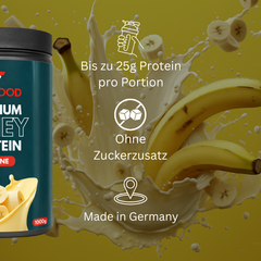 Unser Premium Whey liefert deinem Körper schnell verfügbares, hochwertiges Eiweiß für Muskelaufbau und Regeneration – und schmeckt dabei richtig lecker.