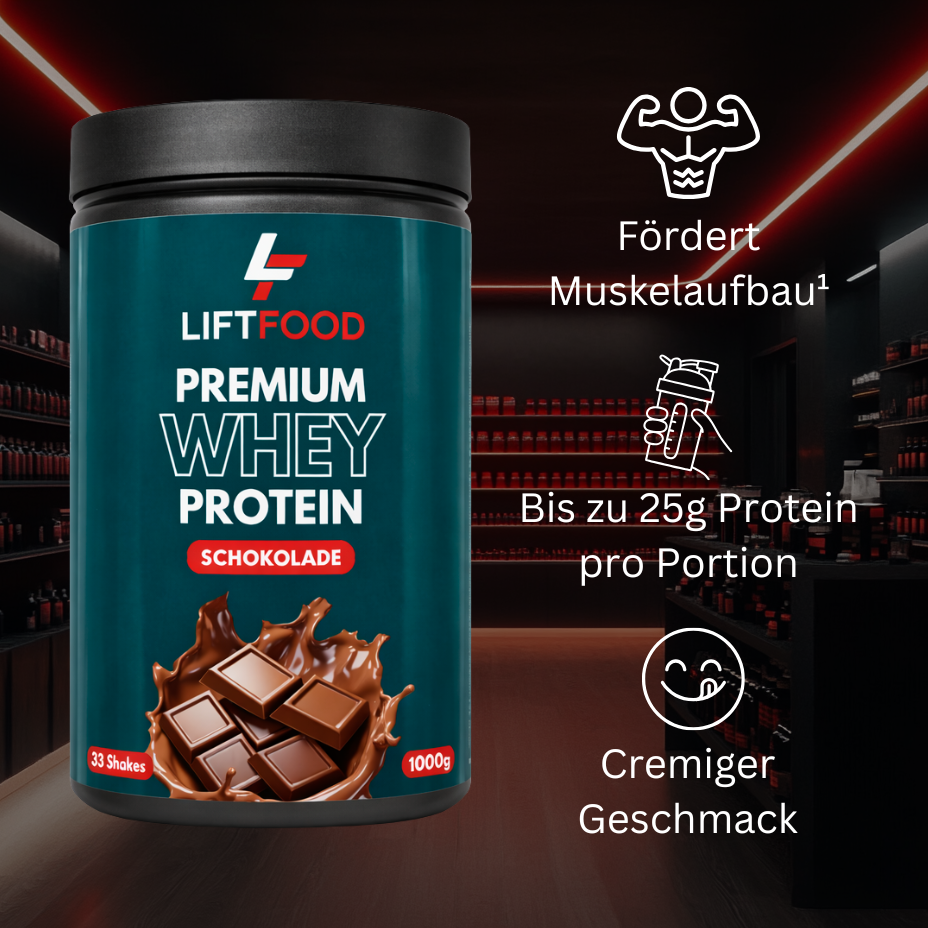 Unser Premium Whey Protein liefert alle essentiellen Aminosäuren für effektiven Muskelaufbau und schnelle Regeneration. Ob nach dem Training oder als eiweißreiche Zwischenmahlzeit – mit Top-Nährwerten, schneller Aufnahme und vollem Geschmack.