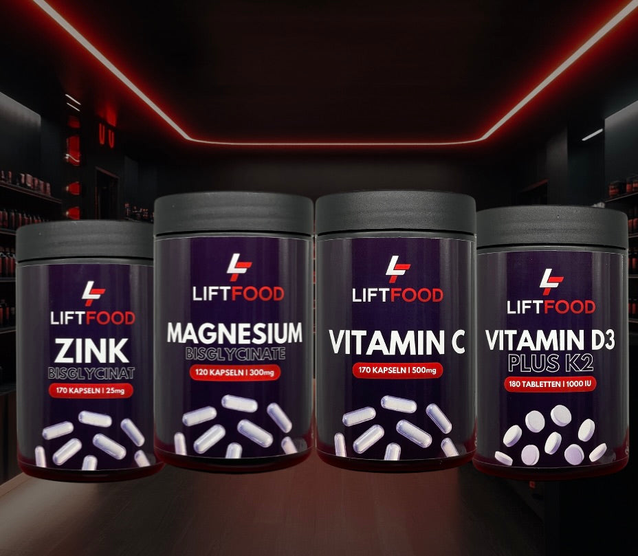 Magnesium, Vitamin C, Vitamin D3/K2 und Zink unterstützen Immunsystem, Muskelfunktion und Regeneration – ideal für deinen aktiven Alltag. Einfach kombiniert, perfekt dosiert, maximaler Nutzen.