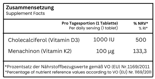 Mikrokristalline Cellulose, Maltodextrin, Cholecalciferol (Vitamin D3), Menachinon (Vitamin K2)