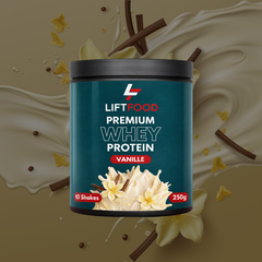 30g LIFTFOOD Premium Whey Protein mit 300ml kaltem Wasser, fettarmer Milch oder Pflanzendrink in einem Shaker mischen.