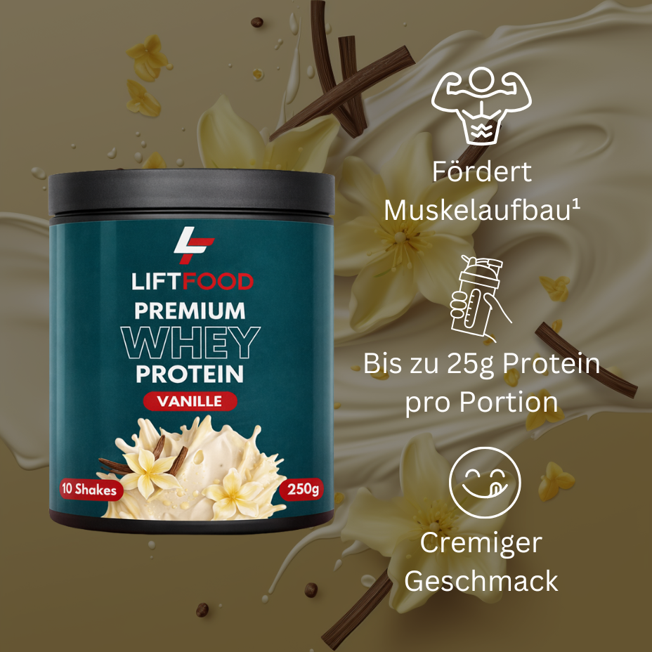 Hochwertiges Whey-Protein mit starken Nährwerten, guter Löslichkeit und bestem Geschmack. Produziert unter höchsten Qualitätsstandards Made in Germany.