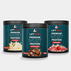 Unsere drei Whey-Sorten in Erdbeere, Schokolade und Vanille sorgen für Abwechslung im Shake-Alltag und unterstützen dich optimal bei Regeneration und Muskelaufbau. Je 250 g Whey – ideal zum Testen, Mischen und Genießen.
